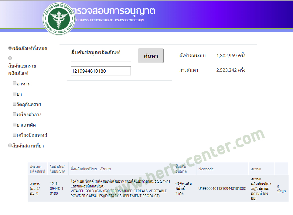 ขึ้นทะเบียนอย. จดแจ้ง : ไวต้าเซลโกลด์ VitacelGold อย.เลขที่ 12-1-09448-1-0180