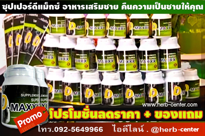 SuperDMaxxx ซุปเปอร์ดีแม็กซ์ ประกอบไปด้วยสุดยอดสมุนไพรหลายชนิดที่คัดสรรเอาเฉพาะตัวพระเอกที่มีชื่อเสียงในทุกภูมิภาค และมาจากทุกมุมโลก เพื่อตอบสนองความต้องการ และความพึงพอใจของลูกค้า และหวังเป็นอย่างสูงว่า ซุปเปอร์ดีแม็กซ์ จะเป็นผลิตภัณฑ์ที่มีการยอมรับกันอย่างกว้าขวาง กับปริมาณลูกค้าที่เพิ่มขึ้นกว่า 100,000 รายในปี 2558 อันใกล้นี้ผลิตภัณฑ์สมุนไพร SuperDMaxxx ซุปเปอร์ดีแม็กซ์ มีดีอะไร ทำไมต้องเลือก SuperDMaxxx ซุปเปอร์ดีแม็กซ์ เห็นผลในเม็ดเดียว เอาอยู่จริง แข็ง อึด ทน ได้ใจจริงๆ SuperDMaxxx ซุปเปอร์ดีแม็กซ์ ราคาถูกกว่าผลิตภัณฑ์อื่นๆ 30-50% ช่วยรักษาโรคนานาชนิด SuperDmaxx ดังสุดๆ ผ่านรายการเคเบิ้ลทีวี SuperDMaxxx ซุปเปอร์ดีแม็กซ์ ผลิตจากสารสกัดจากธรรมชาติ หากท่านส่นใจสั่งซื้อวันนี้กรุณาติดต่อเราโดยตรง และไม่ผ่านพ่อค้าคนกลาง