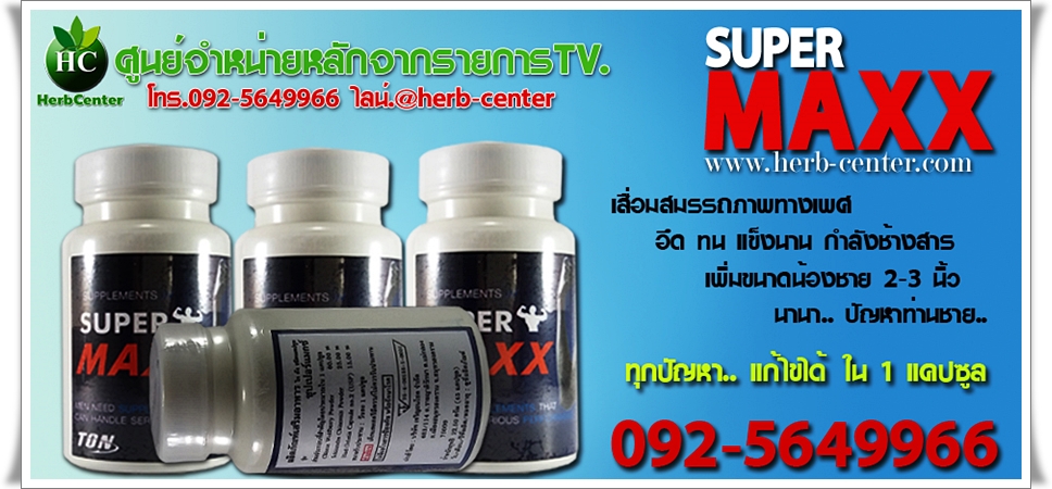ฉะนั้น Super Maxx ซุปเปอร์แม็กซ์ ที่เป็นของแท้และเป็นผลิตภัณฑ์ตัวใหม่พร้อม อย.ที่ถูกต้องที่สุด จึงมีที่ร้านเฮิร์บเซ็นเตอร์ที่นี่ที่เดียว ซึ่งป็นศูนย์จำหน่ายหลักจากช่อง TV. และจากโรงงานผลิตโดยตรง ซึ่งคุณลูกค้าสามารถติดต่อได้ที่ โทร.092-5649966 หรือ ไลน์ไอดี @herb-center ตลอด 24 ชม.