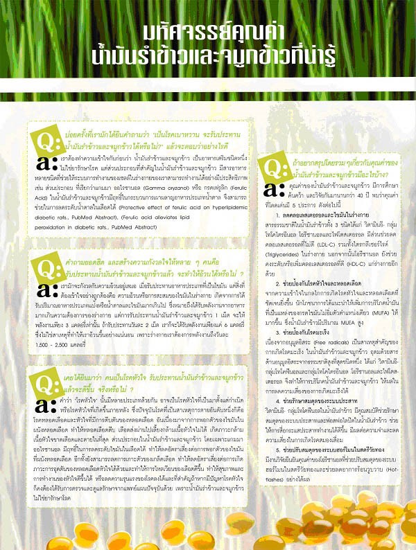 1. มีสาร Gamma-Orzanol ช่วยลดระดับไขมันคอเลสเตอรอลในเส้นเลือด
