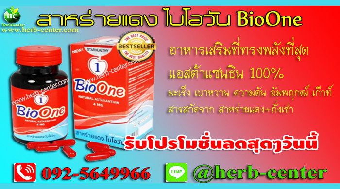 สาหร่ายแดง ไบโอวัน BioOne จึงเป็นอาหารเสริมที่ผ่านการวิจัยจากมาตรฐานGMP.ช่วยในเรื่องของการยับยั้งโรคร้ายต่างๆ และ ไบโอวัน BioOne ยังช่วยต่อต้านความเสื่อมของร่างกายได้เป็นอย่างดี เนื่องจาก สาหร่ายแดง ไบโอวัน BioOne ผลิตจากสาร"แอสต้าแซนธิน" ซึ่งสกัดมาจาก สาหร่ายแดง ที่มีสายพันธุ์ดีที่สุดในโลก เป็นที่นิยมกันทั้งในยุโรปและอเมริกา ใน ไบโอวัน BioOne ยังมีส่วนผสมของ"ถั่งเช่า" ซึ่งเป็นสมุนไพรที่มีราคาแพงและดูแลสุขภาพร่างกายได้ดีของฝั่งทวีปเอเชีย เท่านั้นยังไม่พอ สาหร่ายแดง ไบโอวัน BioOne ยังมีส่วนผสมของ เบต้ากลูแคน โสมเกาหลี โสมธิเบต สารแอสต้าแซนทีนเป็นสารต้านอนุมูลอิสระที่ทรงพลังที่สุดในโลก