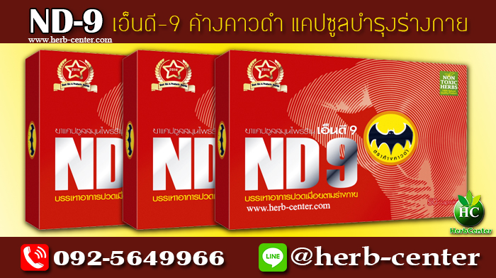 ราคาจำหน่าย : เอ็นดี9 ND9 ค้างคาวดำ กล่องละ 1,000 บาท รวมค่าจัดส่งเก็บเงินปลายทาง